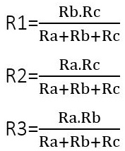 R₃ = (Ra × Rb) / (Ra + Rb + Rc)
