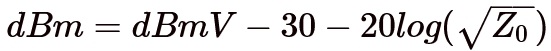 dBm = dBmV − 30 − 10 × log 10 (Zo)