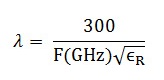 λ = 300 / (F × √εr )